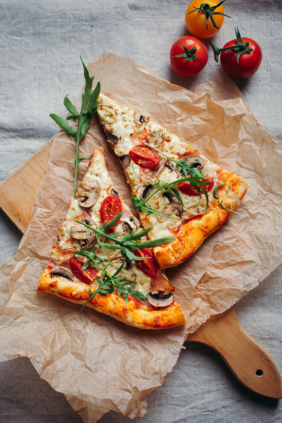 - pizzę amerykańską na puszystym, grubszym cieście,
